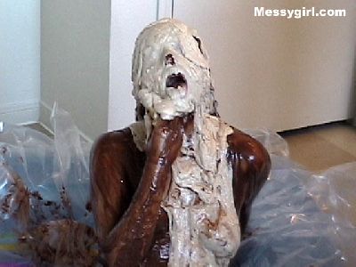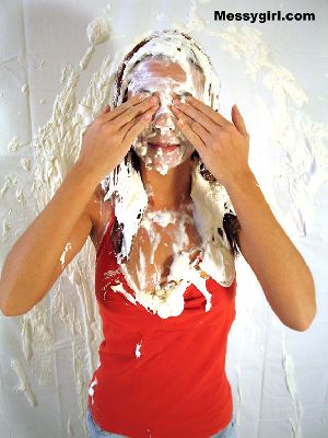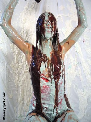 Amber gives newcomer Madison the messygirl spa treatment. Madison is covered in pies, chocolate batter and blue slime. Amber also joins her for some messy play time!