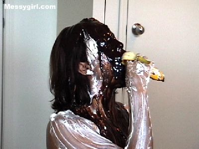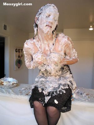 Angie is in her bikini as she is covered in ingredients for a banana split with a few pies thrown in. Wait until you see what Angie does with the bananas! Head to toe coverage and topless!