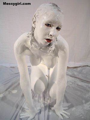 Sexy Madison is pied and slimed wearing only panties, stockings, gloves and heels.