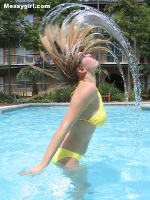 Liz is in her sexy yellow bikini as she enjoys a relaxing dip in the pool.