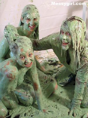 Lexi, Sara and Linda go at it in a messy free for all with pies, slime and head dunking in the slime bucket. The girls end up covered head to toe in the slop!