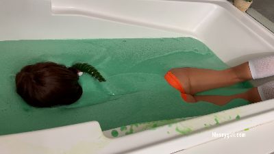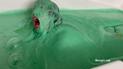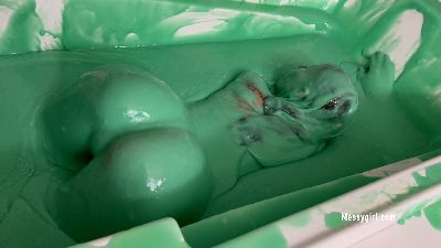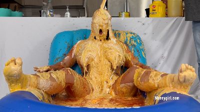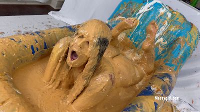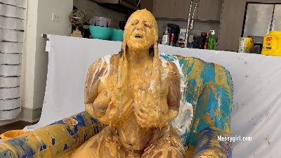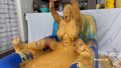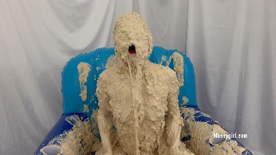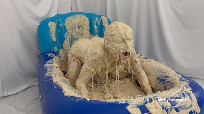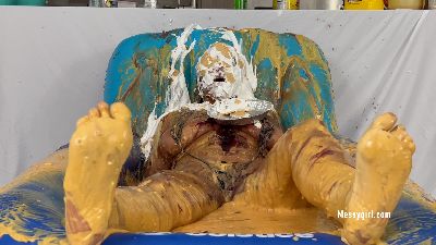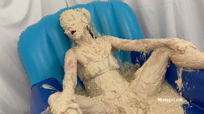 Adorable Dakota is in the inflatable chair and ready to get covered in 10 gallons of gooey glop. She starts out in a dress with no panties and ends up nude and covered head to toe in the sticky glop. She even plays with her gooey pussy.