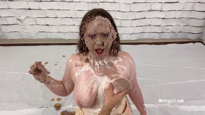 Single mom Sofia received an offer from a customer to go messy extreme and she accepted the challenge. She is handcuffed and has a open ring gag stuffed in her mouth as she takes an onslaught of sweet and savory foods.