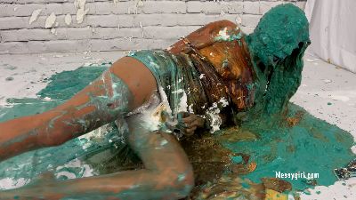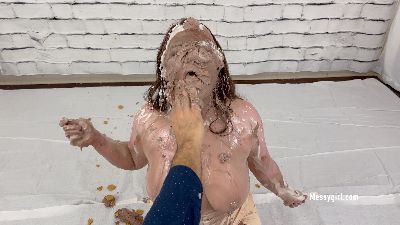 Young 18 year old WAM virgin gets the Messygirl treatment from Penelope. She end up totally covered and topless.