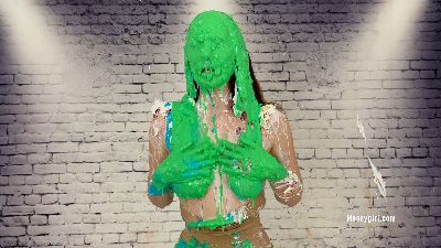 Dakota is covered head to toe in 10 gallons of sticky glop.