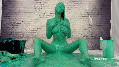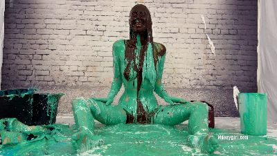 Sexy MILF Sofia is covered in gold paint and then masturbates until she cums. Vert hot stuff from this young mom.