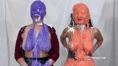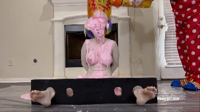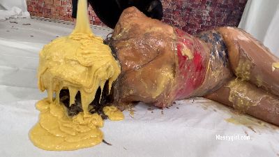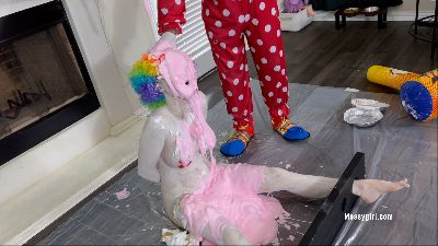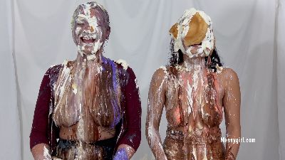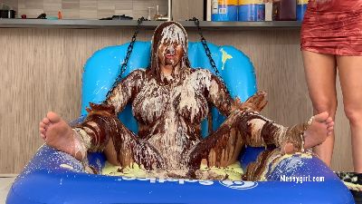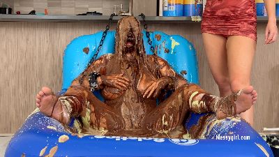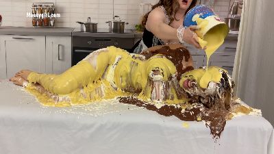 Alice is back for more exposed messy fun. This time she has Zoey pouring all kinds of sweets on her. Alice's reactions are priceless as Zoey taunts and humiliates her with non stop pours of pudding, chocolate syrup, cold liquid cream and batter slime.