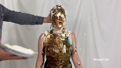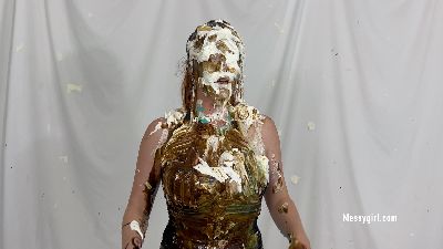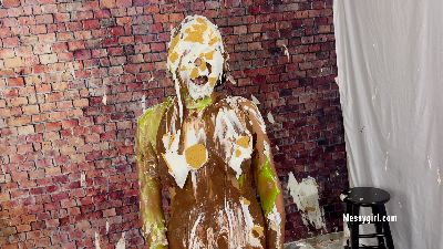 Young 19 year old Cassandra does her first WAM shoot. She is naturally nervous as she awaits her messy onslaught. We don't hold back as she is unmercifully pied and slimed. A Messygirl star is born!