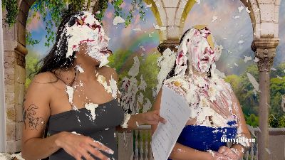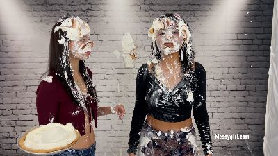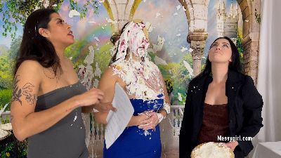 Penelope, Jacy and Mia gets into a tit for tat pie fight on a movie set. They don't hold back as all the pies are smashed hard in their faces.