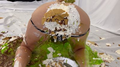Nude and exposed Alice is covered in all kinds of messy sweet things