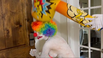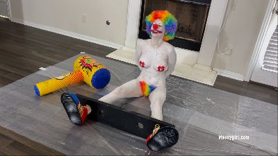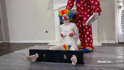 Thief Zoey breaks into a house of a clown. When the clown arrives he catches her in the act and takes her to the back room to transform her into his personal play clown slut.