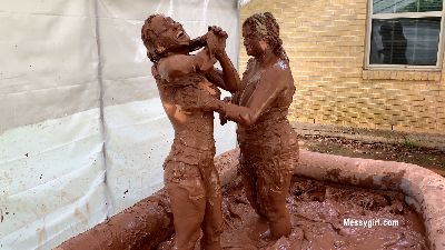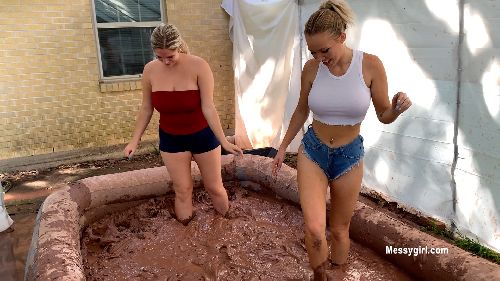 Zoey and her busty friend Alice get down and messy in an outdoor mud pool. Both girls end up covered head to toe as they wallow about and wrestle in the thick sticking mud.