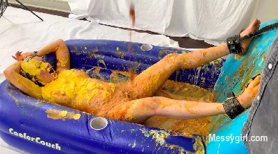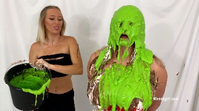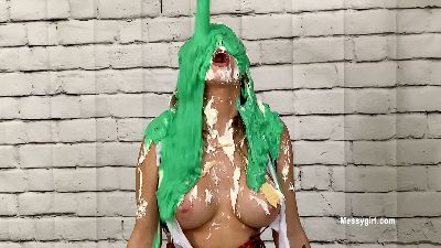 Zoey is reading and relaxing when a note falls from above. It reads "Look Up" so she does. This starts an endless slime, pudding and chocolate syrup pours over her pretty face. You will enjoy Zoey's reactions in this one.