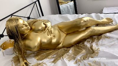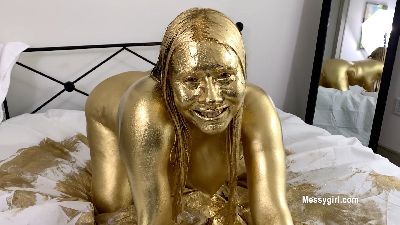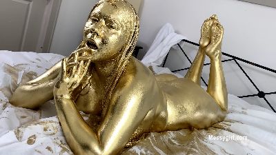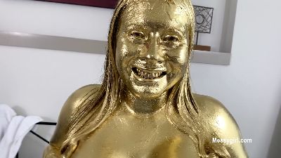 MewMew does her first gold paint shoot and she doesn't disappoint. Her shyness goes away as she covers every inch of her body in gold and you see it all too.