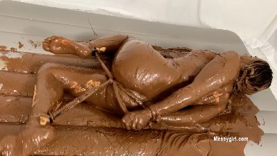 Poor Michelle is stripped nude and hogtied. She is placed on a clean side of a bed that is coated in Nutella. She is then rolled over onto it and must try to escape.
