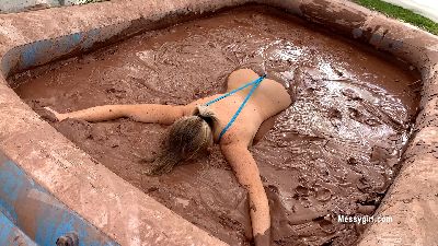 Zoey visits a private outdoor mud pool for a good old fashion mud wallowing. She starts out in a slingshot bikini as she face plants in the thick mud. The bikini slips off and exposes her clean nipples. Soon every clean part under the bikini is exposed and slathered as she is totally engulfed.