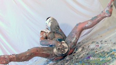 Amy, Misty and Penelope each have a large bowl of metallic paint. Amy and Penelope have gold and Misty has silver. The girls are nude as they begin to paint themselves. You will enjoy the interaction between them as they apply the paint. Once covered head to neck, they each pour the bowls of paint over their heads and give themselves paint facials. Now the girls are completly covered and get very playful with each other with slippery body rubbing.