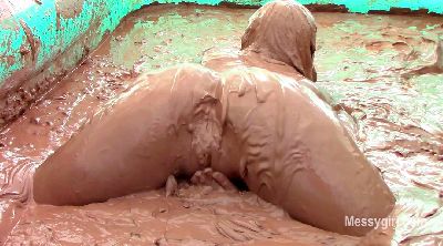 Amy is in a bikini as she walks around a large pool of thick mud. Once she steps in it, she goes all out naughty as she is transformed into a sexy mud creature.