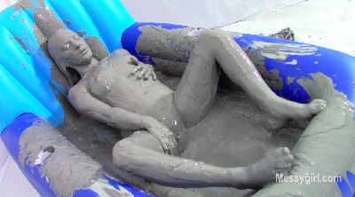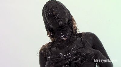 Sabrina goes WAM extreme as she is covered head to toe in sticky black grease. She goes from wearing a bikini to all nude.