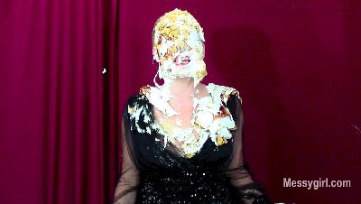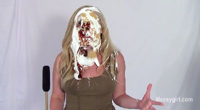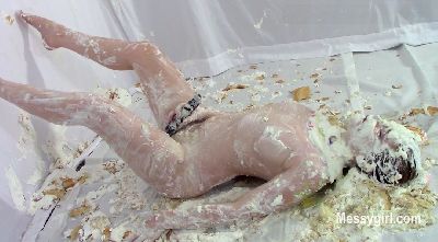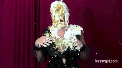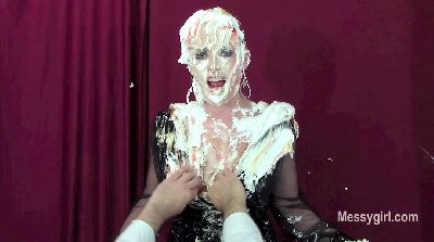Sabrina has done two shoots for us, but has not yet been initiated. Well, today is the day for that. Amy is on hand to administer the humiliating and messy initiation. Poor Sabrina has no idea what she is instore for. Amy starts out by teasing Sabrina with a pie and has it smashed hard in her face. After a few more pies to the face and some whipped cream play, she gives Sabrina a slime pour over the head. She then makes Sabrina get on all fours for head dunking in a bucket of slop. Amy then strips off Sabrina's dress and makes her get on all fours again so she can pull down her panties for a pie to the ass. This is followed with a wedgie. Amy is calling Sabrina names such as "Messy Slut" and "Pig" as she makes her roll about in the slop. Amy then makes Sabrina pie herself and smear it all over her now slop covered body. Now Sabrina can call herself a true Messygirl.
