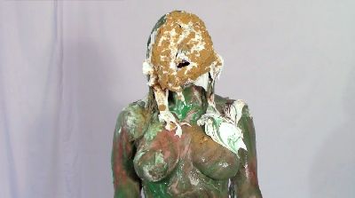 Amy is still being a bitch to her maid Misty and is still threatening to get her fired if she doesn't do a good job. Amy is getting ready for a big dinner party and is going to take a shower. She tells Misty she better have the place clean by the time she gets out of the shower. When Misty is cleaning, she gets a phone call. It turns out she got a new job. Misty is grateful, but has unfinished business with Amy to settle. So Misty pulls Amy out of the shower and is about to give her a taste of her own medicine. Misty ties up Amy's arms and legs so that she is standing up on her elbows and knees. Misty then starts to slather Amy with gooey peanut butter head to toe. While she does this, she tells off her old boss. Next comes smelly pond scum mud poured all over Amy. This is smeared all over and transforms Amy into a smelly freaky slop monster, just in time for her arriving guests to see.