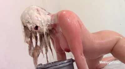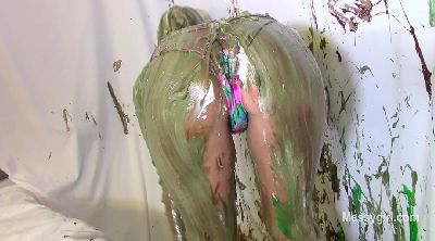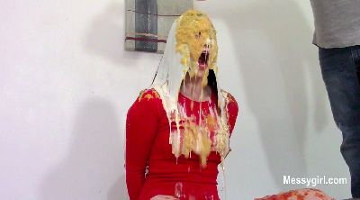 Penelope returns after taking a year off to pursue a glamour modeling career. It turns out that she missed being a Messygirl and asked if she could come back. We were more than happy to have her get messy for us again. So we introduced her to our new messy boat to help her get back in the swing of things. She starts out wearing a tight dress and open toe heels. She takes off the shoes and steps into the messy boat. When she is seated and relaxed, she tells Mr MG to let her have it. She is then greeted with pies hard to the face and endless slime pours over the head. She is loving it! She then takes off the dress and rolls around in the slop that has collected in the boat. You get a nice view of her exposed sloppy ass and pussy as she rolls around. She can't get enough of the slop as she pours it over her head continuously. Welcome back Penelope!