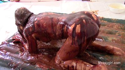 Misty is being interviewed by Amy for a maids job. But Amy finds out Misty lied about her work experiance and will tell the agency that sent her. Misty begs Amy to not tell the agency and that she will do anything because she needs the job. Well, Amy wants to teach Misty a lesson, so she takes her to the basement to have a bit of fun with her. She makes Misty strip nude and then get on the mattress so that she can tie her arms and legs together. Amy then inserts a gag in Misty's mouth. Now comes the messy humiliation. Amy smears peanut butter all over Misty's body including her face and into her mouth with the open mouth gag. Next comes dark honey over her head and this is followed with caramel syrup. Poor Misty is a total mess, but next comes chocolate syrup over her head and body. Amy then tells her to open her mouth and inserts the force feeder. Amy makes Misty swallow a chocolate shake and then scoops up the slop on the bed and feeds it to Misty as well. Amy then tells her roll around in the mess like a pig. Once Misty is done, she crawls away a humiliated mess. The good news is she got the job!