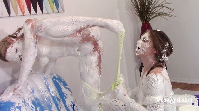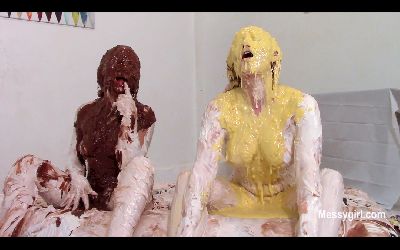 Amy and Katie team up agin and this time both get equally messy. The messy free for all ends up being a hot make out session in the mess. Great sexual chemistry between them.