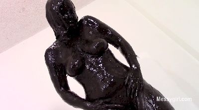 Busty XlcrMoon returns and this time she goes extreme by being covered in black grease and oil. She makes sure to give herself a full thick slathering all over her hot nude body. Next comes the oil and this sets off a very slippery sensation that she enjoys by rubbing it all over body. She then rolls about on a plastic canvas. Very hot stuff!
