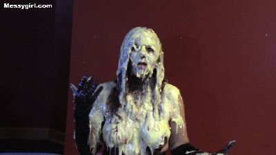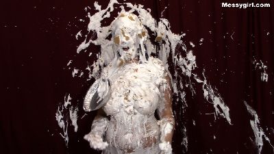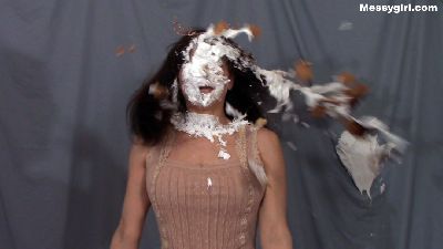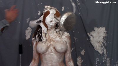 Cute WAM virgin Jessie pays us a visit. She is very nervous and has no idea what to expect. We ask her to tell us a bit about herself and during the interview she is pied. You will love her reaction as she experiences pies for the first time. Next is a batter pour over the head. She tries to keep her compouser as the mess keeps coming. She then takes off her sexy teddy and gets pied topless. She then pies herself and then gets a chocolate batter pour over the head. She is now a complete mess as she gets on all fours and pushes her face in a pie on the floor. She then pours more batter over her head and rubs it all over her now nude body. You get the added bonus of Jessie taking a shower as she is interviewed about her first Messygirl shoot.