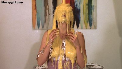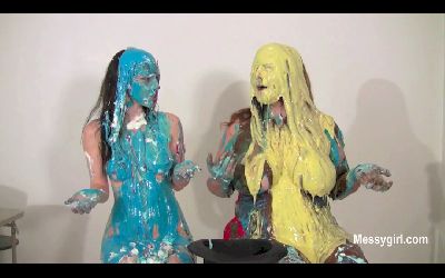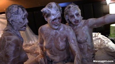 Husband sacrifices his Asian wife, Katy, to Amy, fulfilling his dirty desire for lesbian fun. Amy pies this cutie till she loses count and submerges her beautiful face in buckets of chocolate batter. Amy then pours the batter over Katy`s head and rubs butter cream on her tits and lips. Before you know it, Katy is totally covered head to toe in the mess. Amy finishes her off with a cream slime pour. Katy also gets spanked and has her hair pulled, making her an official MessyGirl.