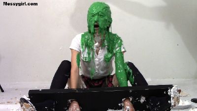 Alana wants to end her date by giving her guy a blow job. So she gets on her knees and opens her mouth. She is ready to take him, but instead, gets a face full of green slime. She is shocked and thinks she just got the messiest facial she ever had. She then discovers it's slime and is confused. She then gets even more slime to the face. This is followed by a thown pie to her face that knocks her back on her ass. While still down, she gets more slime to the face.