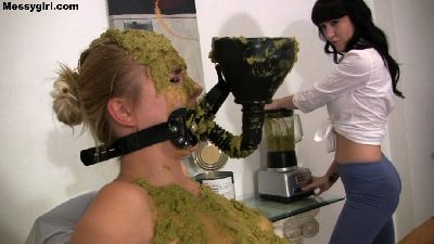 Amy gives newbie Alana her Messygirl initiation. Amy doesn't hold back as she destroys Alana with pies, batter, slime and extreme head dunking. Alana is transformed into an unrecognizable sexy blob by the time Amy is done with her.