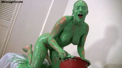 Christina goes all out as she slathers herself head to toe in pies, slime and chocolate.