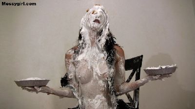 If you enjoy watching the ladies pied on the Brazilian TV show Chega Mais, then you will enjoy our take on it. We have a pretty and nervous Tilly on the stool waiting to be destroyed with thick sloppy colorful pies. Penelope is the lucky one who gets to administer the pies, and boy, does she ever. Tilly is destroyed after it is all said and done.