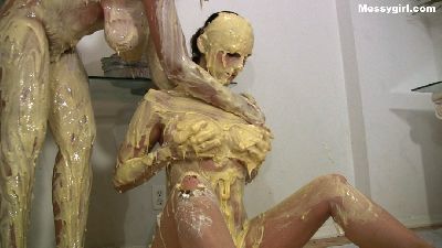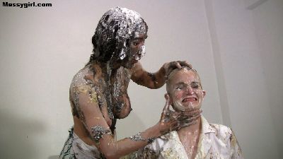 Liz and Jasmine are in a heating discussion about who looks best messy. Needless to say a messy tit for tat fight breaks out with pies and batter. The girls do make up and get very naughty in the mess. Very sexy stuff!