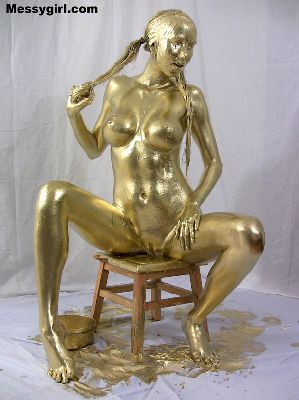 Sexy Lane is covered head to toe in gold paint.
