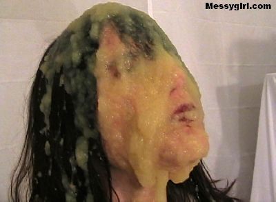 Vicky takes the messygirl shampoo challenge! She endures applesauce, syrup, cheese sauce, beans and a half gallon of mayo!