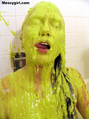 Sexy MILF Michelle takes a relaxing warm bath. !t then turns to a slop bath as pies, slime, melted ice cream and chocolate are added to the mix.