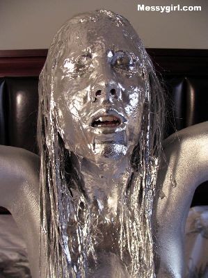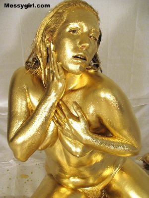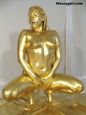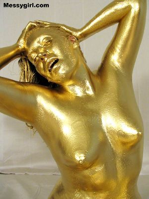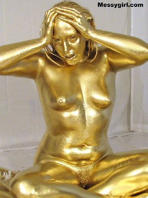 Samantha covers herself head to toe in gold paint. A very sexy look for her!