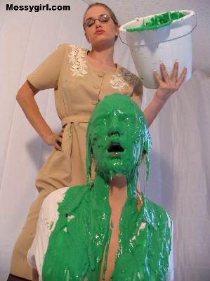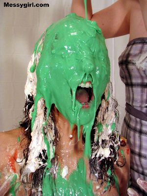 Our two newest Messygirls Samantha and Christina get into a messy pie and slime battle! Both girls end up nude!