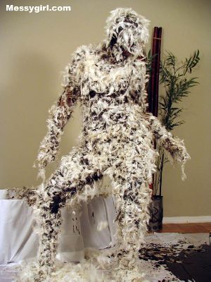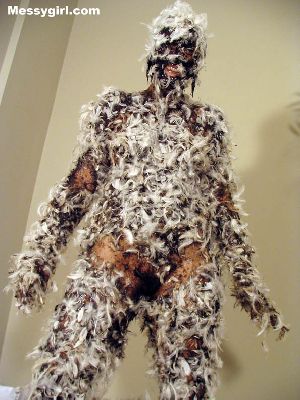 Nikki does our first ever tarred and feathered shoot. She looks like a human chicken after we are done with her!