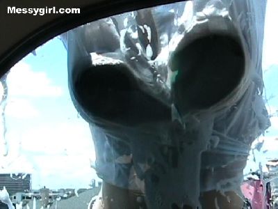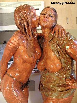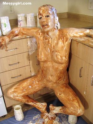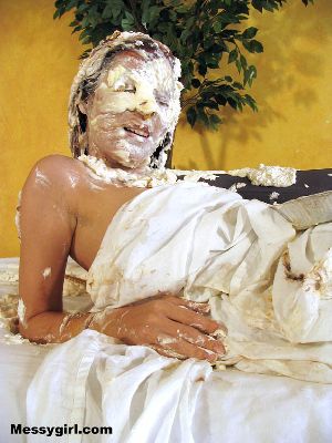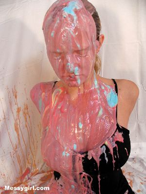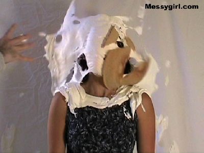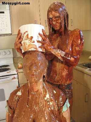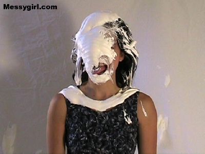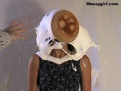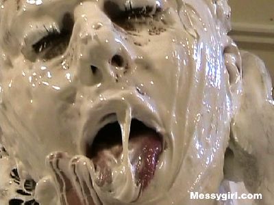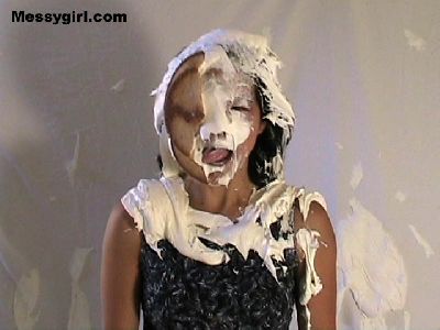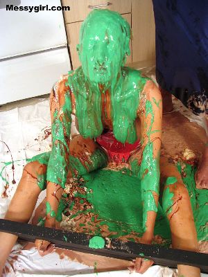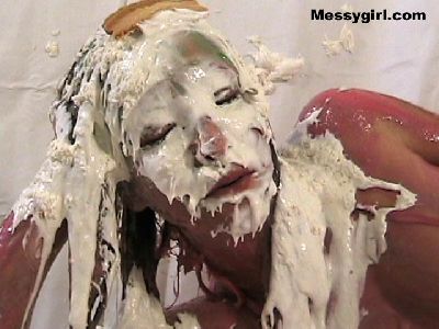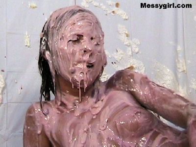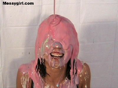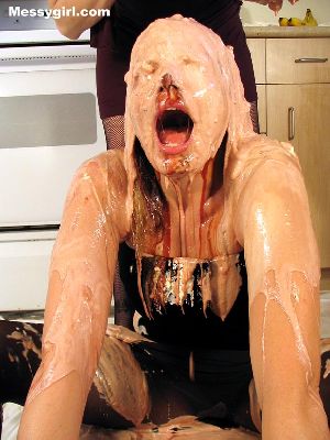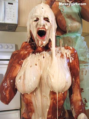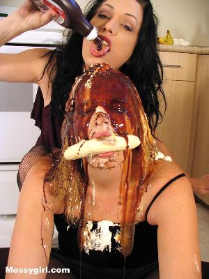 Sasha gives her girl friend a very messy initiation for her first time as a messygirl. Janet is helpless in the stock as Sasha pies, slimes and covers her in ice cream. Both girls go from clothed to nude!