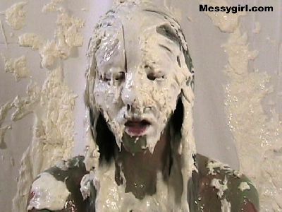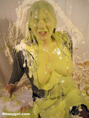 Liz is put in the pie and slime stock for the first time! She gets the full messygirl treatment! Clothed to nude!