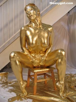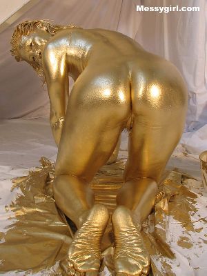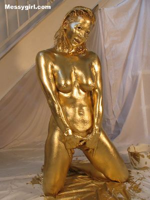 Sexy Jade is covered head to toe in gold paint. Jade made the crossover from our Messy Wives and Girlfriends section to become a full time Messygirl.