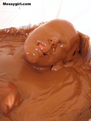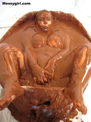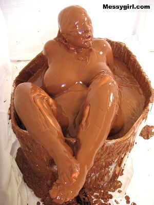 Sexy Vicky takes a bath in 40 gallons of chocolate pudding! She goes from a bodystocking to nude!